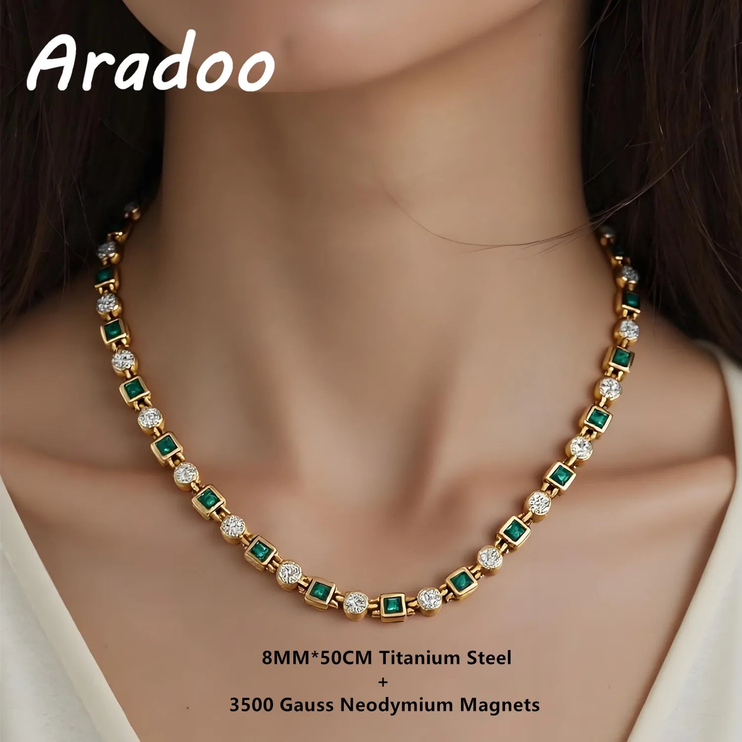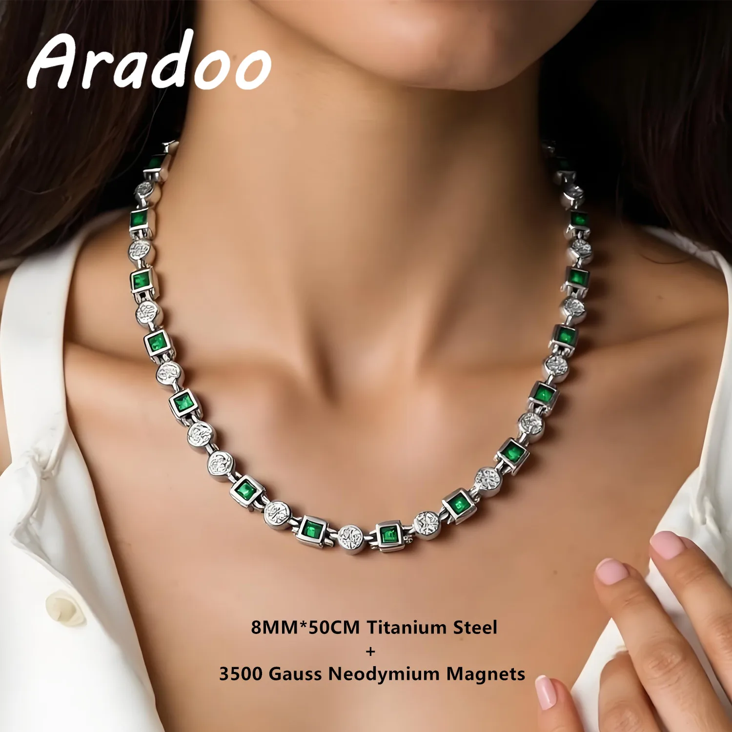 ARADOO Affordable Luxury Style Titanium Steel Necklace for Women with Crystal Cubic Zirconia Collar Jewelry Gifts