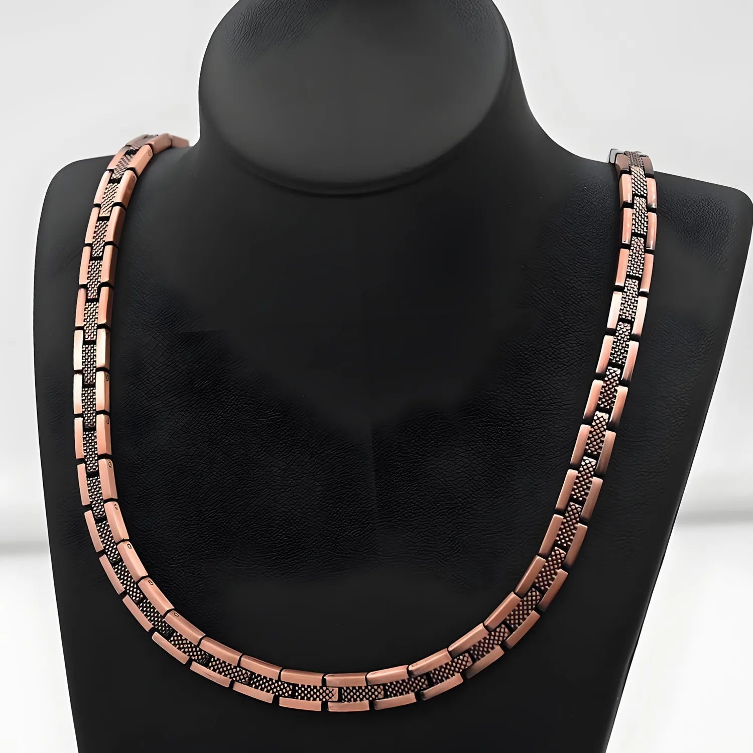 Colar fabricado em cobre 100% genuíno com ímãs discretos de alta intensidade — une beleza e propriedades terapêuticas.