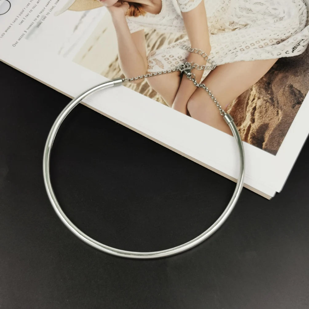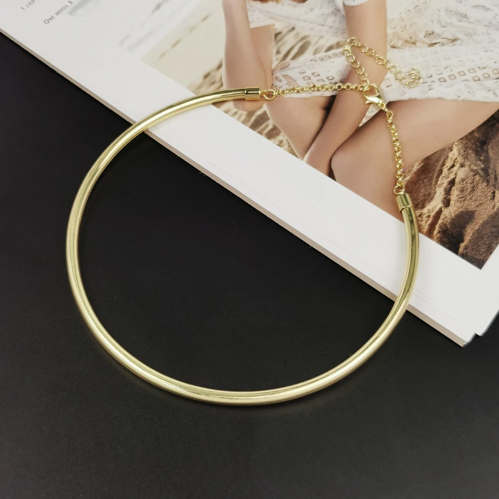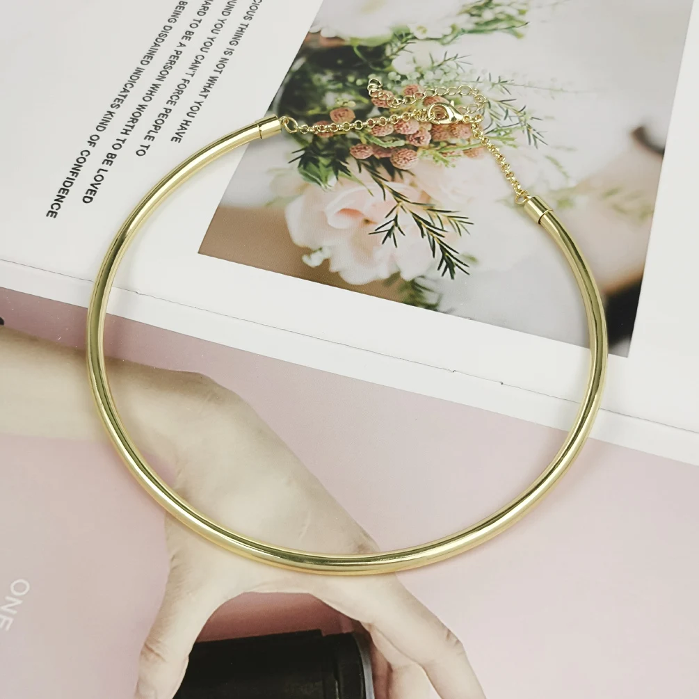 Gargantilha Feminina Dourado – Colar Redondo Liso Tipo Torque, Largura Elegante