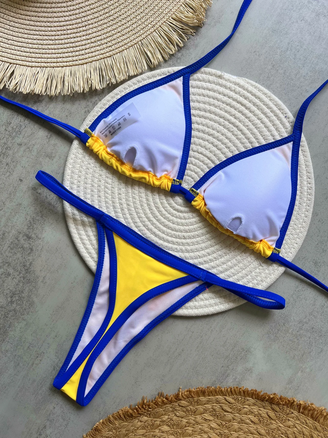 Biquíni Brasil Sexy – Conjunto Bordado com Bandeira + Recortes Contrastantes